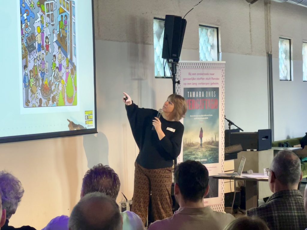 Na een goed verzorgde lunch volgt een interactieve sessie onder leiding van Tamara Onos, arbeidshygiënist, veiligheidskundige en thrillerschrijver. In haar moordspel ‘Vergiftigd’ neemt ze de deelnemers mee in de wereld van gevaar en risico. Wat begint als een onschuldig zwembadfeest, eindigt in een moordonderzoek waarin blootstellingsroutes en chemische stoffen een hoofdrol spelen. De zaal doet enthousiast mee – lachen, nadenken en leren tegelijk. De boodschap: “Gevaar is niet hetzelfde als risico. Pas als je blootstelling begrijpt, kun je echt veilig werken.” Het spel is een goed voorbeeld van andere communicatiemiddelen waarmee complexe informatie overgedragen kan worden aan inwoners, bestuurders en bedrijven.