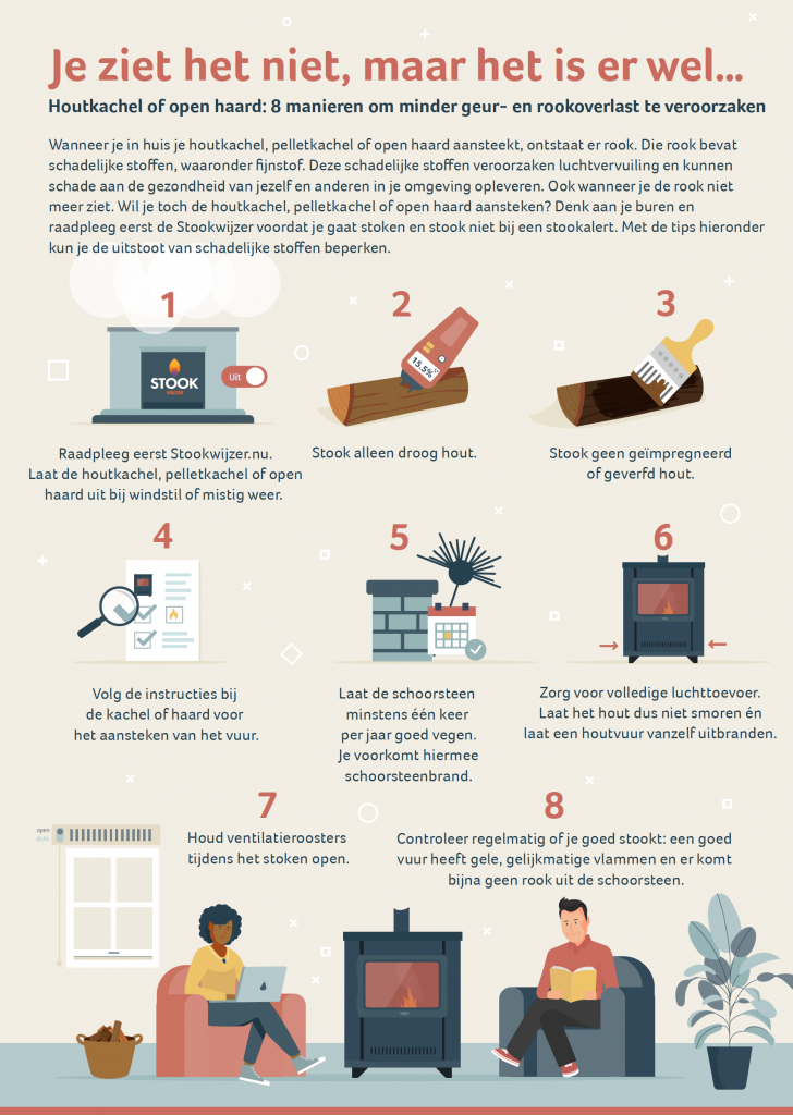 - Ongeveer 1 op de 3 Nederlanders last heeft van houtstook? Dit gaat vooral over geuroverlast, irritaties van ogen en luchtwegen en het dicht moeten laten van ramen en ventilatieroosters.